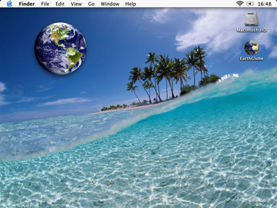 After having the development version partly finished and floating on my desktop for most of this year I'm finally finding some spare time to try and finish it off. EarthGlobe is a real-time, OpenGL rendered globe. Designed as a sister application to MoonDock - it provides a lightweight view of the Earth day-light/seasonal cycles and takes up few system resources so it can be left running on your desktop. A preview 0.9 version is available from the links below, features are still subject to change - your feedback would be much appreciated. Update: Yes, sorry, EarthGlobe has been in a 'preview' mode for quite a while now, there are some new features in the works, and there will be Universal builds for you Intel Mac owners.